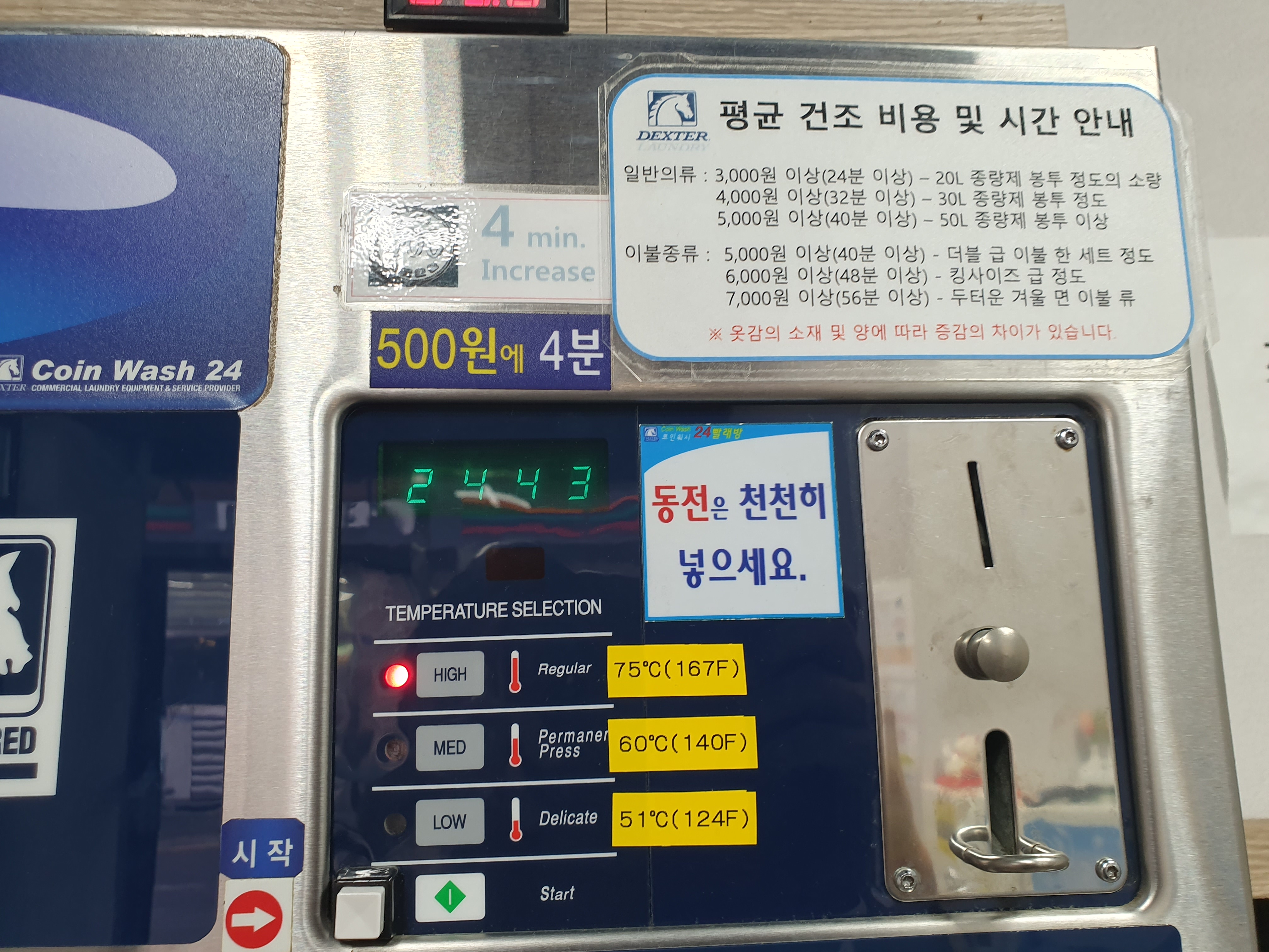 ▲건조기는 500원에 4분 사용 가능합니다.